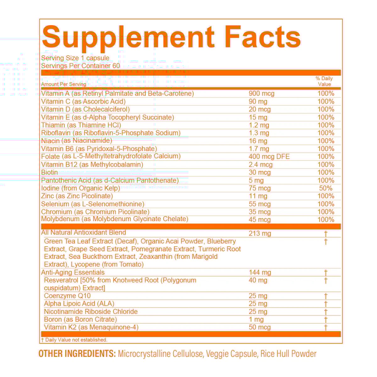 Longevity Multi bridges your antioxidant gap in just 1 capsule a day.