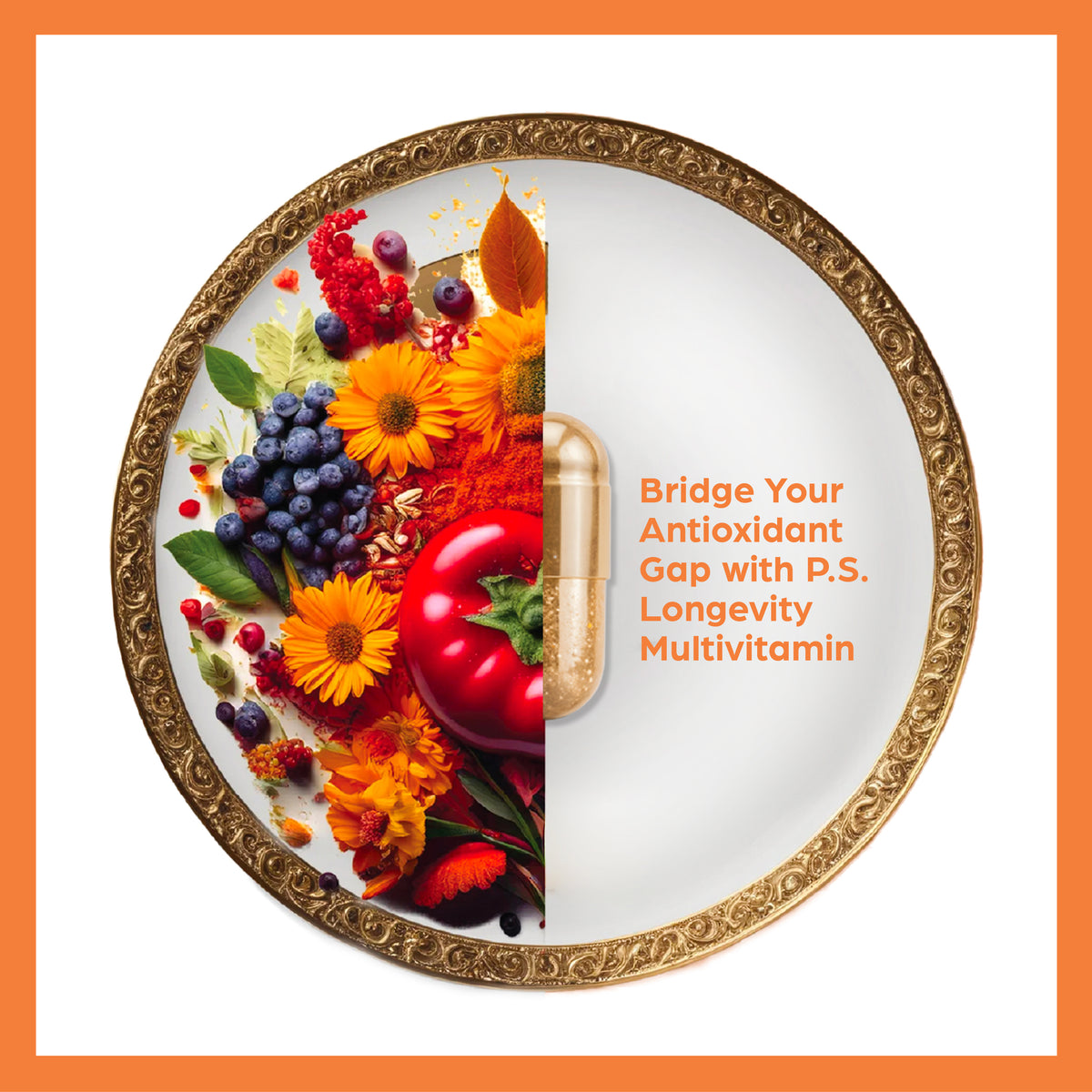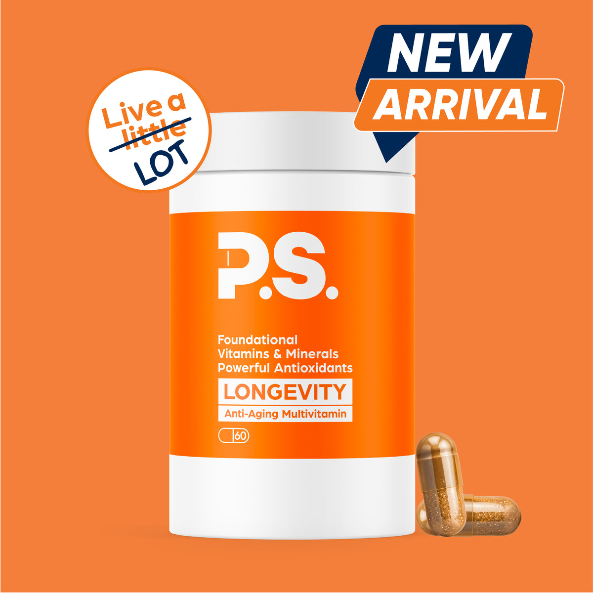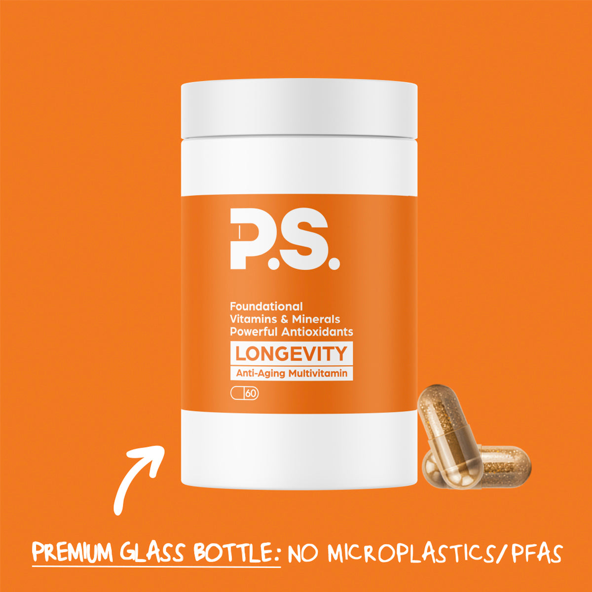 P.S. Longevity Multivitamin is packed with powerful antioxidants such as Urolithin A (from pomegranate), CoQ10, Resveratrol, Nicotinamide Riboside Chloride (NR, an NAD+ precursor), Choline, Alpha-Lipoic Acid (ALA), Lutein and Zeaxanthin so you can hang around this Earth for while longer.