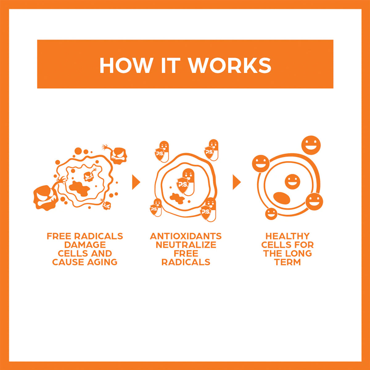 Free radicals cause aging and damage to your cells (oxidative stress). Antioxidants neutralize free radicals to keep your body balanced. P.S. Longevity Multi has just the right amount of your daily vitamins & minerals and is bursting with antioxidants to help you stick around for a while.