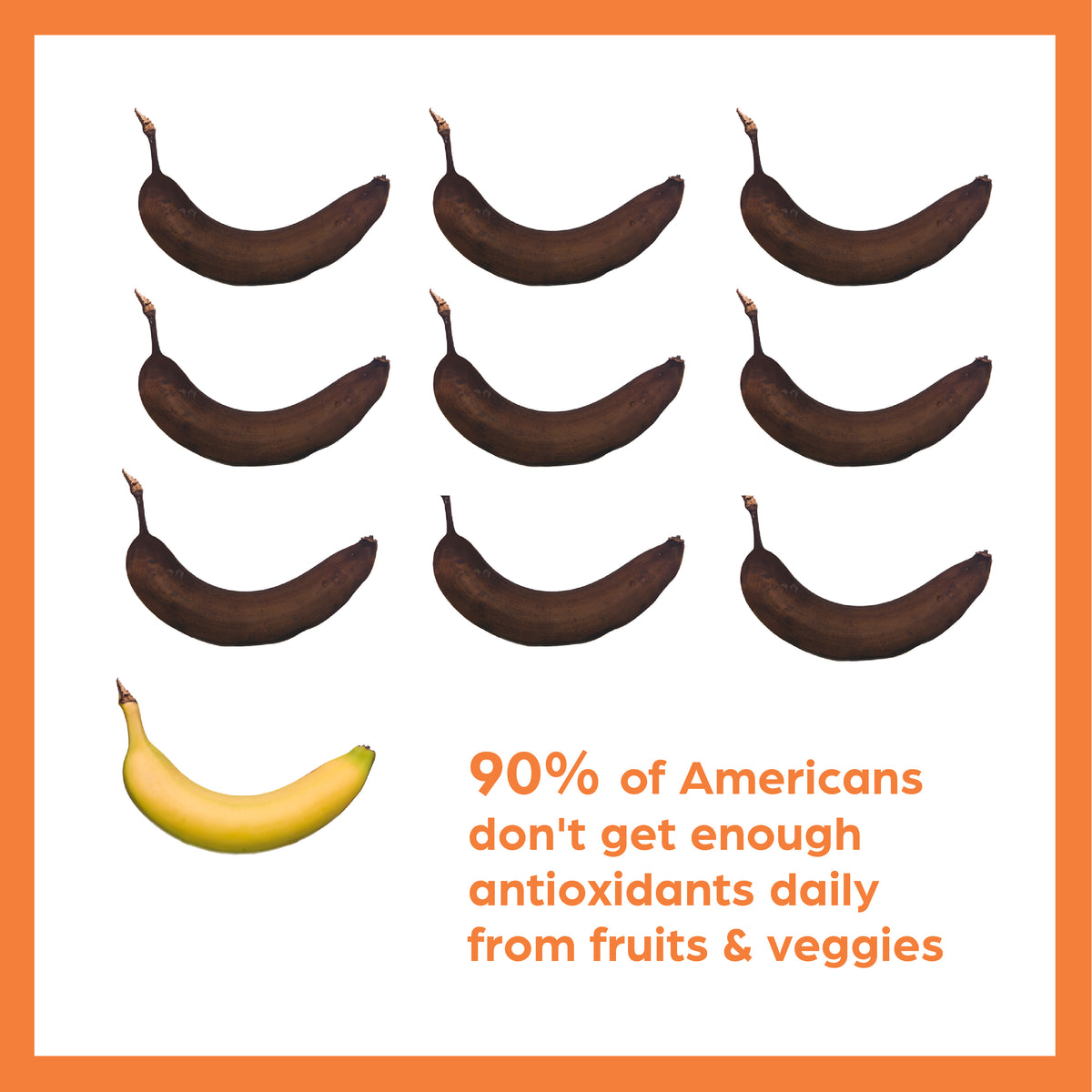 You know when you leave a banana out for too long, it turns brown? That's because of oxidative stress. Free radicals cause oxidative stress in your body, which accelerates cellular aging and causes DNA damage. Antioxidants help prevent day to day oxidative stress in your body (and keep bananas fresher for longer).