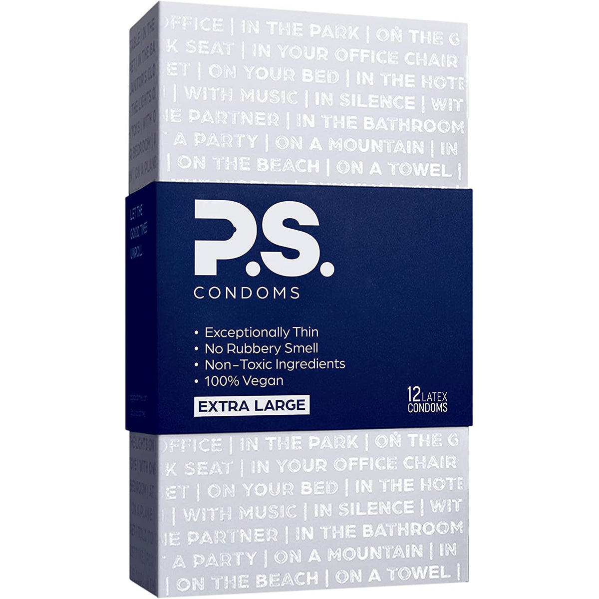 P.S. Condoms are made with all natural rubber latex, using a proprietary distillation process for a smoother and softer condom. Unlike most major condom brands, our condoms are 100% Vegan, and do not contain the animal protein casein. P.S. condoms are lubricated with premium medical-grade silicone, and do not contain parabens, glycerin, bisphenol-A (BPA), gluten, or nitrosamines.